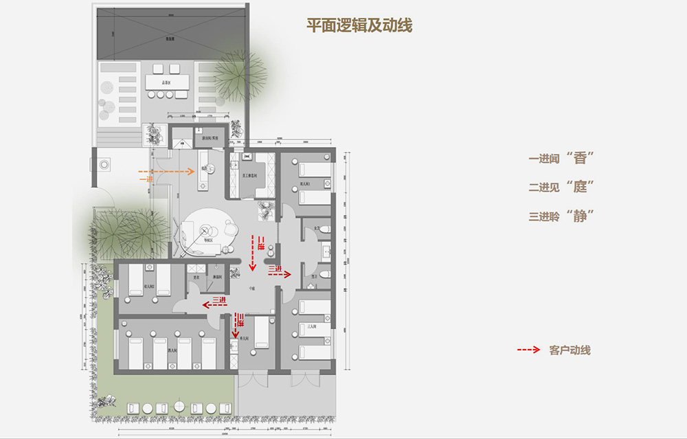 一 進 聞 “ 香 ” 二進見“庭” 三進聆“靜”