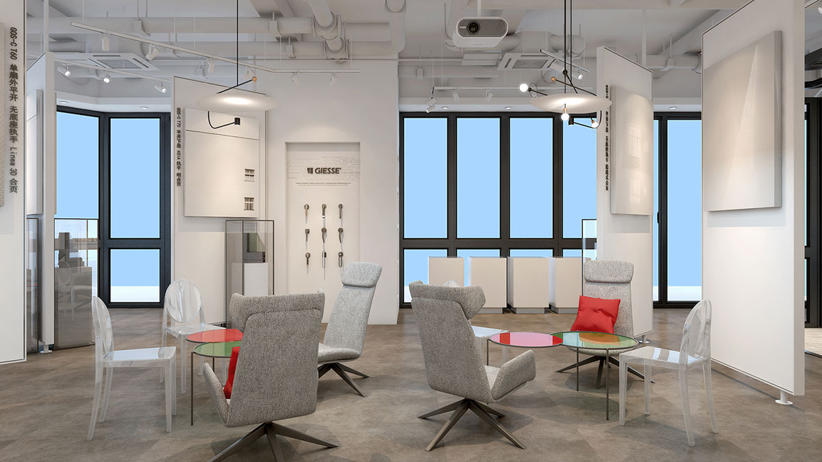 解決方案:五金門窗店面,給消費者的概念就是硬朗,冰冷。我們給吉斯品牌做了突破,加入了意大利的藝術氣息,將產品當作藝術品來陳列,以博物館的展陳方式來展現品牌格調。